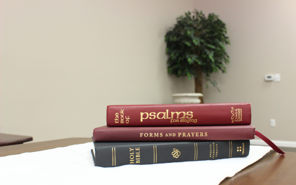 Our weekly liturgy is posted before each service, along with the songs and Scriptures.